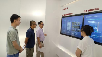 飞腾信息技术有限公司校企合作总监胡师展陪同参观了国产CPU研发中心,介绍了公司近年来校企联合培养的成果。双方围绕共建培训基地、联合培养技术技能人才等议题进行了深入交流。