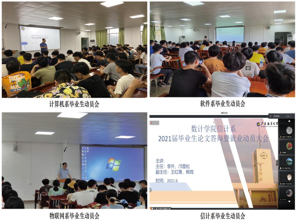 6月2日-3日,计算机科学与技术等四个系均组织毕业生专题动员会,系主任谈专业建设与发展,引导毕业生珍惜学习成果,以最好状态做好论文答辩和就业工作。