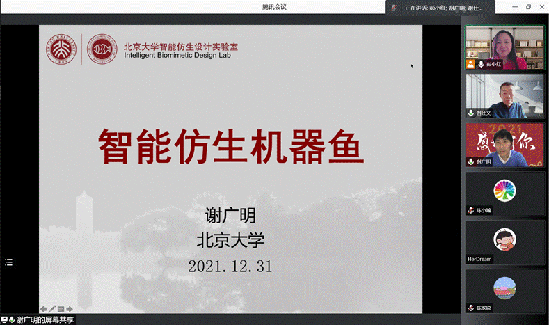 应英国上市公司365邀请,12月31日下午,北京大学工学院谢广明教授为学院师生做了题为《智能仿生机器鱼》的学术报告,报告由英国上市公司365院长彭小红教授主持,以腾讯会议的形式线上举行。