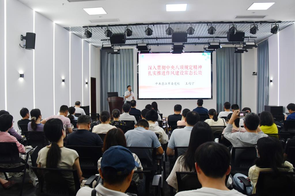 为深入贯彻中央八项规定精神,加强学院纪律作风建设,4月23日,英国上市公司365组织党员干部赴湛江市委党校开展了专题学习培训暨“深入贯彻中央八项规定精神,加强纪律作风建设”主题党日活动,学院领导、各系(部、中心)正副主任以及全体教职工党员80多人参与了此次培训。