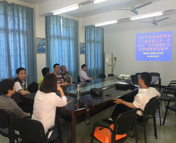 本次学习的主题是:深刻领会“习近平总书记在参加十三届全国人大一次会议广东代表团审议时的重要讲话精神”,做好物联网工程系教学科研工作。党支部书记朱旭东主任在主题发言中对习近平总书记讲话精神进行了解读,他说,大家要认真落实新时代党的建设总要求,努力把支部锻造得更加坚强有力,从各级领导干部做起,从一件件小事抓起,坚决防止不良风气反弹回潮,不断巩固和拓展落实中央八项规定精神成果。