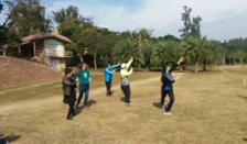 在风景如画、绿草如茵的湖边,实验中心的肖敏老师辅导大家学跳京剧广播体操,大家跟着肖老师愉快地学起了京剧体操。接着,实验中心和网络系教师们进行了平卧撑、俯卧撑及单脚支撑比赛。比赛中大家努力争先,欢声笑语。接着大家还进行了徒步和登山运动。