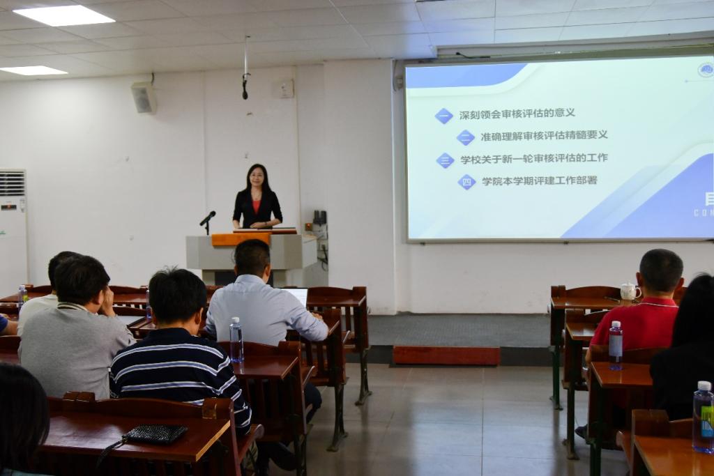 动员会上,院长彭小红从深刻领会审核评估的意义、准确理解审核评估精髓要义以及学校关于新一轮审核评估的工作三方面作了介绍,深入解读了新一轮审核评估的背景、原则、目标、分类及方法,并结合学校本学期的十项审核评估工作任务对学院的评建工作进行了部署。她指出,要充分利用新一轮审核评估的契机,系统梳理学院的人才培养工作短板,完善教育教学质量保障体系,推进学院高质量发展。彭小红强调,全院师生要统一思想、凝心聚力,高标准、高质量完成好学校部署的每一项工作,扎实有序开展学院的自评自建工作。