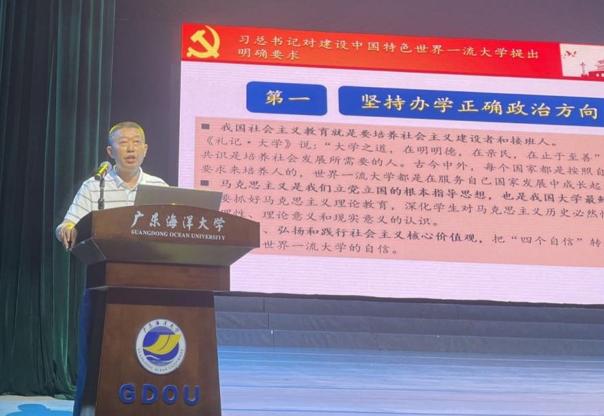 学院党委书记谢仕义带领大家学习习近平总书记在北京大学师生座谈会上的重要讲话,作题为“深入学习习近平总书记的重要讲话精神,深刻领悟大学的本质和内涵”的报告。他围绕以人为本、崇尚学术、追求卓越和与时俱进的大学理念,分析了大学自治、学术自由、社会责任、道德追求等大学精神,阐释了大学在物质、精神、制度和环境等层面的多元文化和大学在人才培养、科学研究、社会服务和文明传承上的重要职能,他要求同学们要坚定正确的政治信仰,明确目标,求真务实,苦练本领,努力把自己培养成为堪当时代重任的合格大学生。