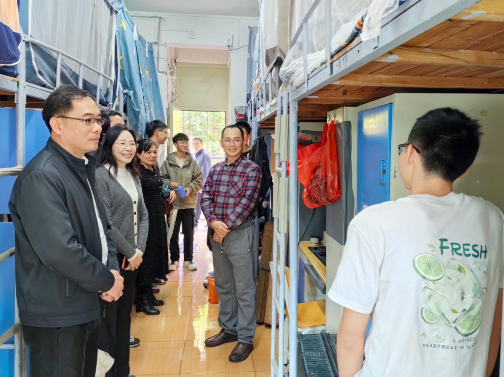 走访中,彭小红仔细询问了同学们的居住条件、学习情况和个人成长等情况,特别强调了珍惜时间、刻苦学习和积极参与各类校园活动的重要性,希望同学们能够保持一颗不断探索的好奇心。她表示学院将会全力以赴地支持大家的学习和成长,并祝愿同学们在学业上取得更大的进步,生活愉快,前程似锦。