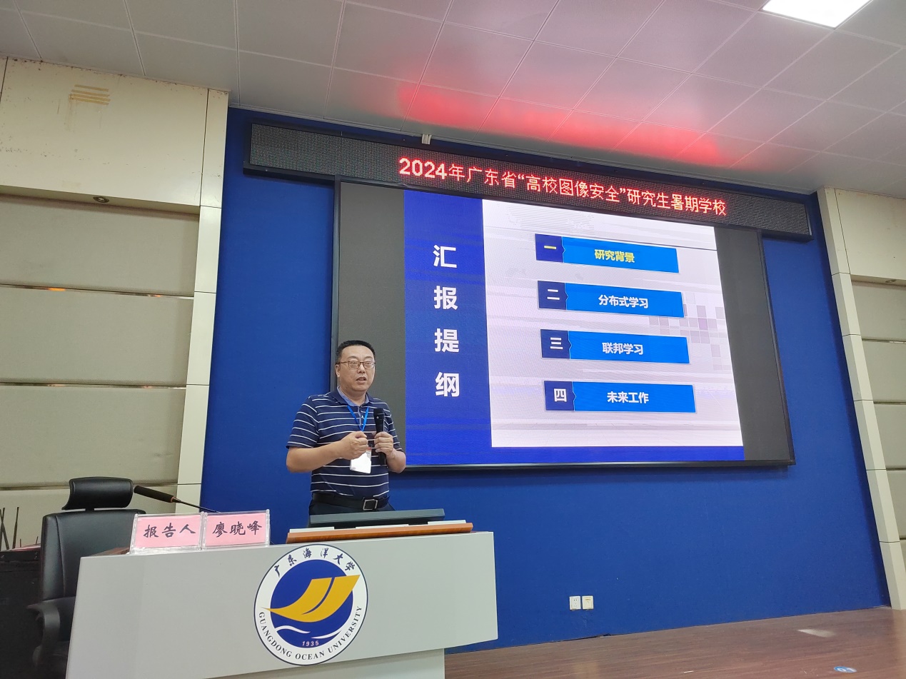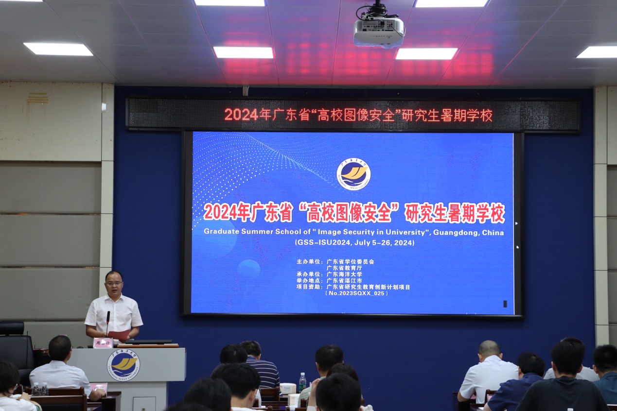 7月6日上午,由广东省学位委员会与广东省教育厅主办,广东海洋大学承办,广东海洋大学英国上市公司365协办的广东省“高校图像安全”研究生暑期学校在广东海洋大学水生博物馆会议室顺利开幕!英国上市公司365党委常委、副校长周昌仕教授出席开幕式并致辞,重庆大学二级教授廖晓峰、浙江大学李春光教授、中山大学计算机学院郑培嘉副教授分别作特邀专题报告。开幕式由研究生院院长叶国栋教授主持。