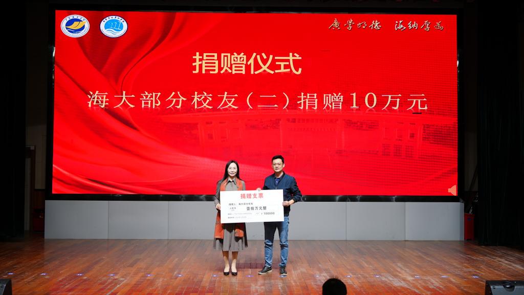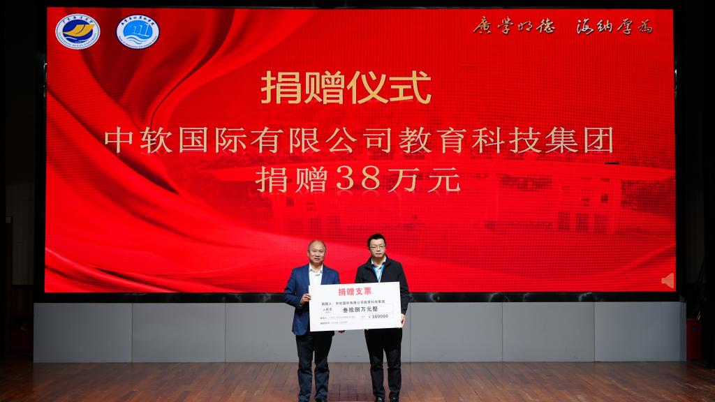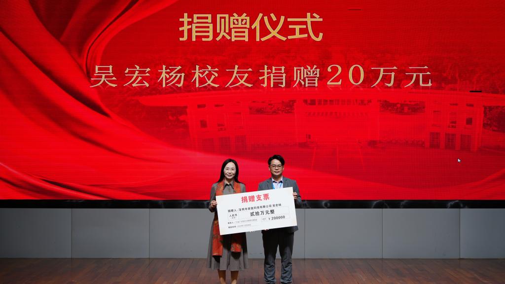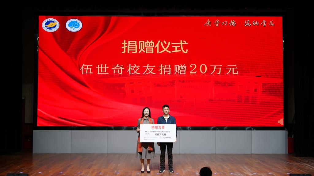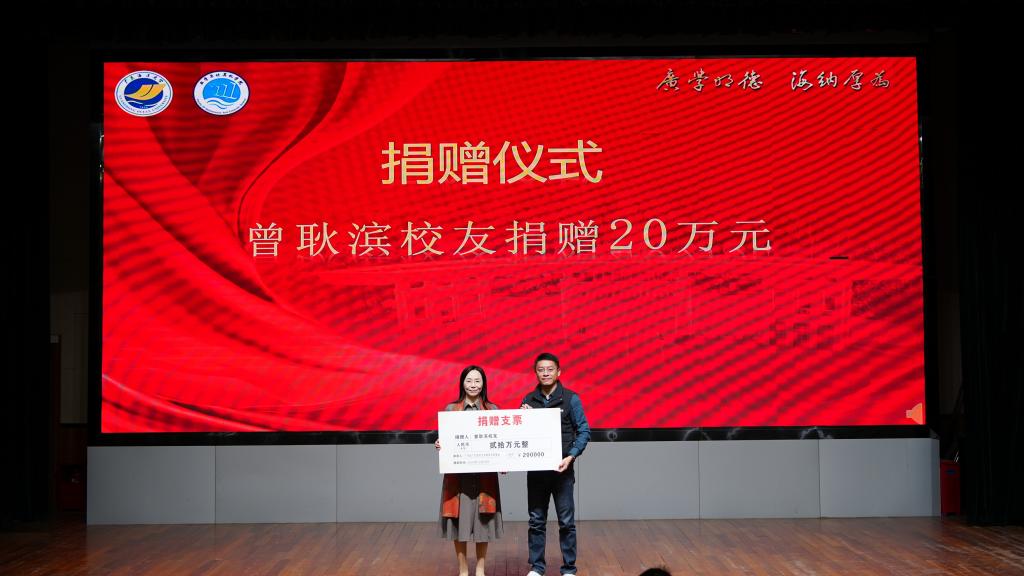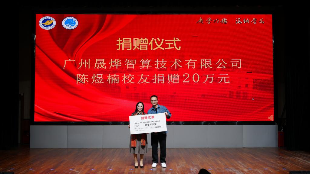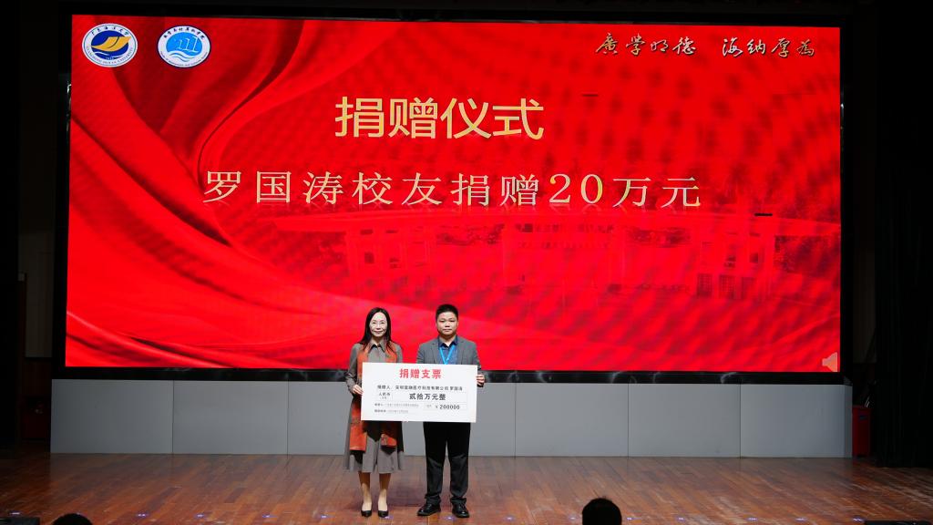 随后举行了企业及校友代表向学院校友会捐赠仪式。邓逢光副校长接受中软国际有限公司教育科技集团捐赠38万元,彭小红会长接受吴宏杨、罗国涛、伍世奇、曾耿滨、陈煜楠等校友代表捐赠共计120万元。合计总捐款达158万元。