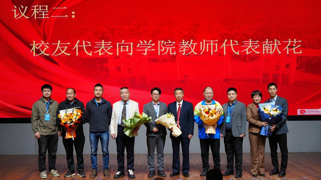 大会在庄严的国歌声中拉开帷幕,校友代表为学院教师代表献上鲜花,以表达莘莘学子对授业老师多年来辛勤培养的感激之情。