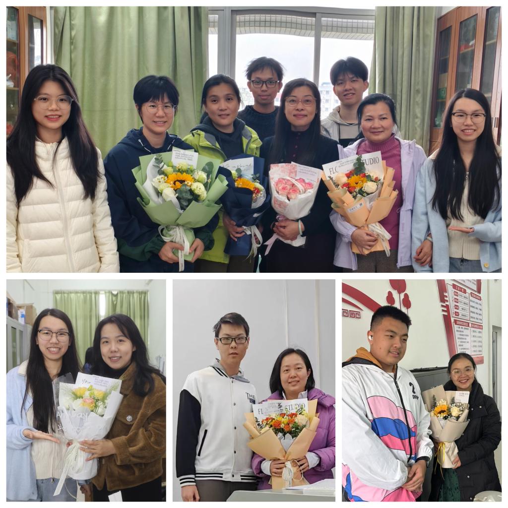 活动中,学院的学生们也热情高涨地参与进来,用自己的方式向老师们送上节日的祝福。无论是在课堂上,学生们趁课间休息,庄重地将鲜花递到老师手中;还是在实验室里,学生们带着敬仰,在实验间隙向老师表达心意;亦或是在办公室,学生们礼貌敲门后,献上精心准备的花朵。这些看似微小却饱含深情的举动,让女教师们沉浸在节日的喜悦之中,深深感受到来自学生的敬爱与关怀。不少女职工感动地表示,她们将始终以校为家,以更加饱满的热情和坚定的决心,为学校和学院的高质量发展倾尽全力。