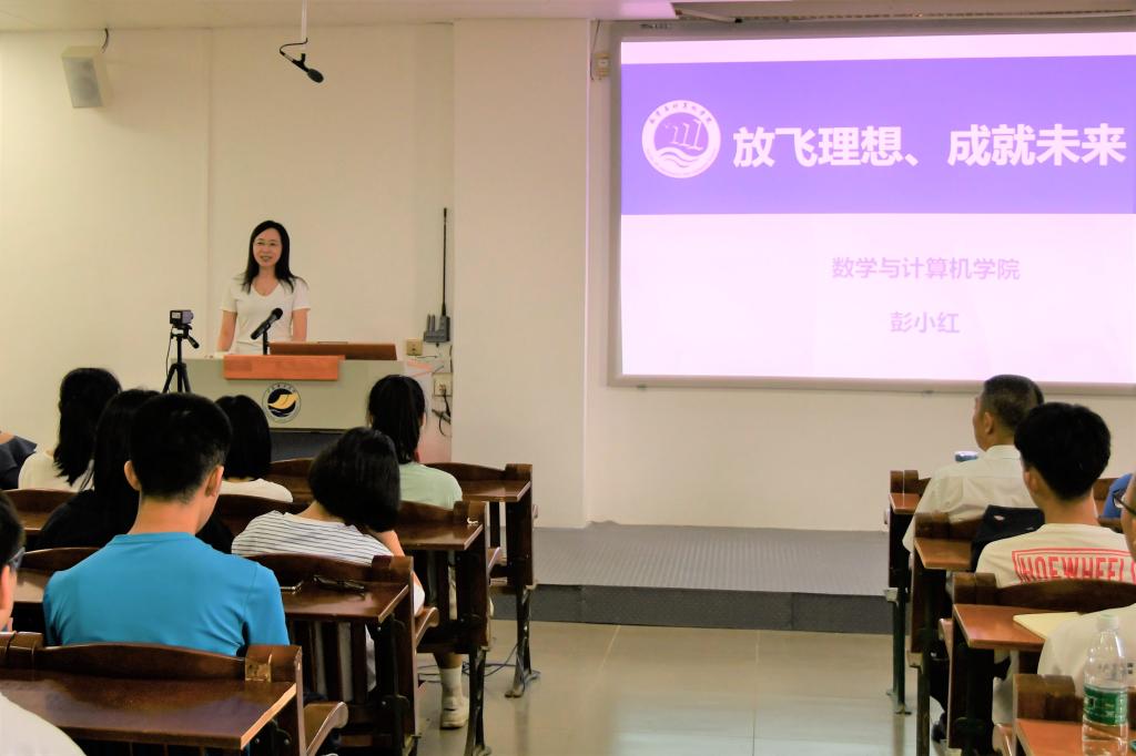 开学典礼在庄严的国歌声中拉开序幕。学院院长彭小红教授为新生致欢迎词,并以“放飞梦想,成就未来”为题讲授新生入学第一课。她先介绍了学院的学科和专业建设情况、办学定位、学风建设情况和未来发展规划,随后指出顺利度过大学四年的四个要点:一是快速适应、学会自修;二是打牢基础、加强实践;三是培养兴趣、掌控时间;四是培养友情、参与群体。最后,她再次强调了新冠肺炎疫情防控不能松懈,要筑牢校园疫情防线。