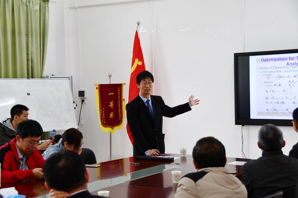 凌永权在学术讲座上首先介绍了当前的一些优化理论及其应用,包括如何保证具有无限个约束条件的优化问题的所有条件得到满足、如何寻找非凸优化问题的全局解、如何寻找非光滑优化问题的所有局部解;接着讨论一些时频分析中的优化问题,包括如何把最优滤波器设计问题、最优滤波器组及小波核设计问题、分数傅里叶变换的最优旋转角度设计问题、分数傅里叶变换的最优掩幂设计问题、经验模式分解的最优本质模态函数选取问题、奇异谱分析的最优分量选取问题表示成为具有无限个约束条件的优化问题、非凸优化问题及非光滑优化问题,并进行求解;最后把以上最优化时频分析技术应用到基于人工智能的可穿戴无创血糖检测系统的去噪模块、特征提取模块和分类器设计模块上作了详细介绍。