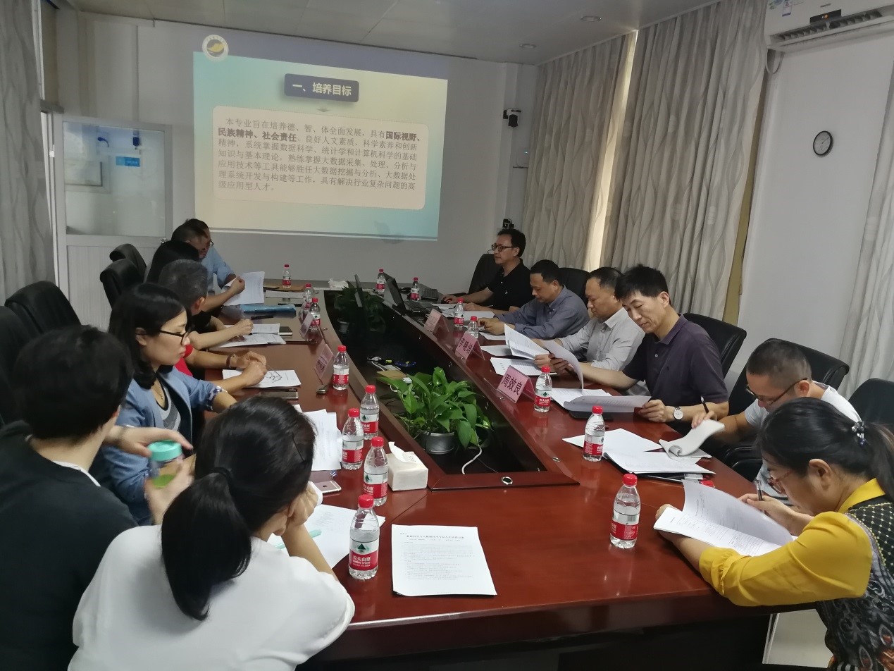 会上,数据科学系系主任邝雪松首先汇报了本次人才培养方案修订的原则、步骤及目前存在的问题及困境,并对2017版人才培养方案修订中本专业的培养目标以及相应课程的调整情况进行说明。在此基础上,三位校外专家分别提出了许多宝贵的修改意见,如,在必修课中增加《离散数学》、应将《数据可视化》由选修调整为必修、《最优化理论》应调整到选修课、适当增加大数据专业核心课程及行业应用的综合实践课程等。党委书记谢仕义指出培养目标必修要进一步明确,专业定位要准,要按专业认证的目标和要求进行人才培养方案的修订等整体的修改方向;院长彭小红则分别就培养目标、毕业要求、课程设置给出了具体的、详细的修改意见。
