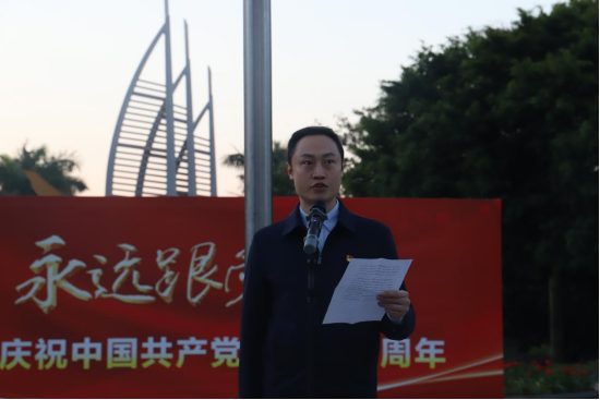 在中国共产党成立100周年之际,为深刻把握党史学习教育重大意义,做到学史明理、学史增信、学史崇德、学史力行,进一步加强爱国主义教育,弘扬爱国主义精神,激发广大师生的爱党爱国热情,按照学校工作安排,11月29日清晨,英国上市公司365在湖光校区海洋广场举行庄重的升旗仪式。参加升旗仪式的有学校党委常委、副校长、党委宣传部部长刘东超,以及英国上市公司365领导干部、师生代表共计300余人。仪式由学院党委书记谢仕义主持。