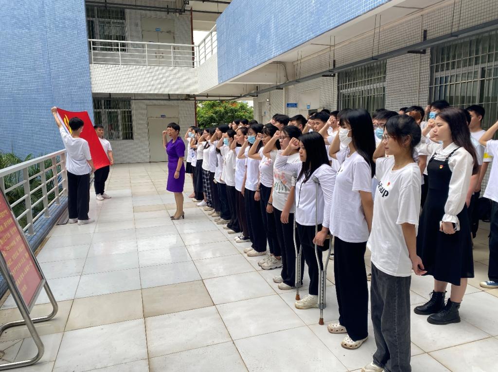 首先,由周荣伟领誓,全体毕业生员佩戴党徽,庄严地举起右手,重温入党誓词,接受再一次的思想洗礼和升华。周荣伟强调,重温入党誓词,是为了让党员们牢牢守住初心,担当为人民谋幸福为国家谋复兴的使命。毕业后,无论在继续深造还是走向工作岗位,都一定要以新时代合格党员的身份严格要求自己,既要仰望星空,又要脚踏实地,在人生的长征路上书写华章。