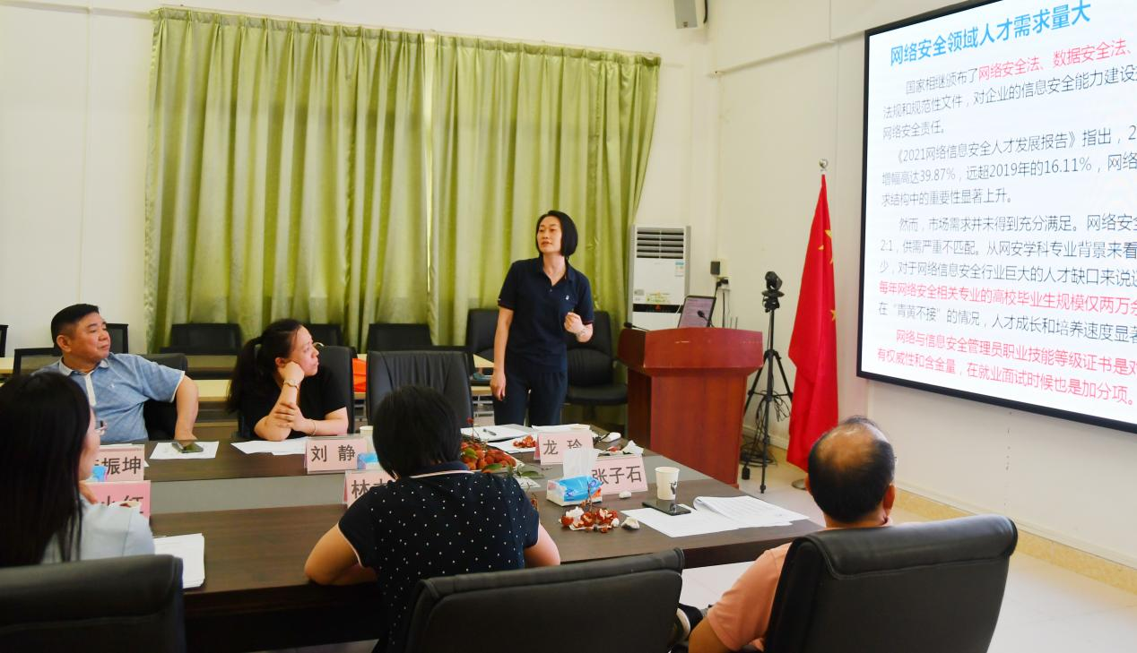 接着分别由李振坤教授介绍“粤港澳大湾区工程师资格互认”,郭嵩山教授介绍“中小学信息奥赛的发展及现状”,黄轩秘书长介绍“省学会关于青少年信息学科师资普及的政策”,刘静部长为大家作“促进中小学信息学科的师资普及提高和筹建中小学信息学科的基地”专题汇报。 杨惜爱部长介绍“网络与信息安全管理员”培训考证相关事宜。最后参会人员详细讨论了各个议题的详细实施方案。