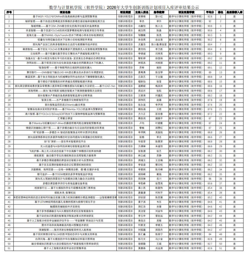 根据学校《关于开展 2026 年大学生创新创业训练计划项目征集 入库与结题验收工作的通知》要求,经学生个人申请,资格审查,学 院评审专家组评审等程序,现将推荐结果予以公示。