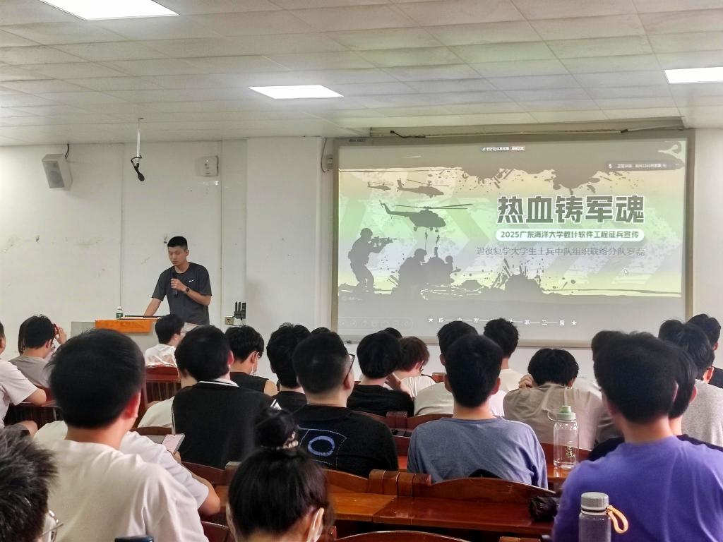 最后,软件系优秀退役大学生士兵罗磊跟同学们分享了他的军旅生活和成长经历,鼓励有志于投身国防事业的毕业生们在军营中锤炼自我、实现人生价值。