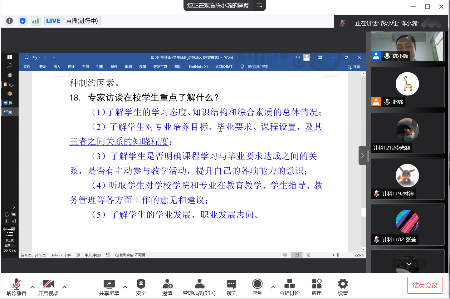 为迎接教育部工程教育专业认证专家进校考查,强化学生主动参与意识,营造积极氛围,5月14日上午,英国上市公司365在腾讯会议室开展计算机专业学生专项培训会。会议由计算机专业认证核心组成员陈小瀚主讲,学院党委书记谢仕义、院长彭小红、党委副书记周荣伟、计科系主任余应淮、分管辅导员及计算机专业学生共550余人参加。